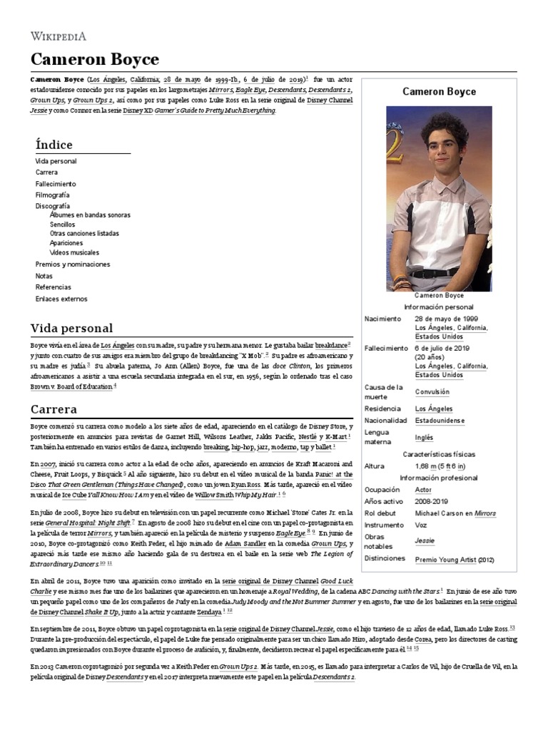 Fue declarado muerto en el lugar a las 235 pm. El ltimo gran papel de Cameron Boyce en el cine acaba de salir a la luz y la pelcula ya se gan un premio. Era el nio ms amable talentoso y decente.